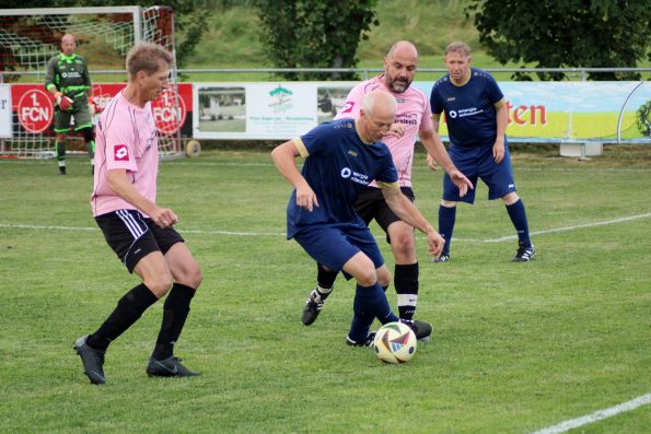 Den Auftakt machte das AH-Turnier am Freitagabend, das in einem echten Krimi im Neunmeterschießen gipfelte. Die „Mondspritzer“, prominent besetzt – unter anderem mit Landrat Stefan Rößle und Donauwörths Oberbürgermeister Jürgen Sorré – sicherten sich den Turniersieg gegen die „Bezirksligalegenden Altisheim/Leitheim“. Diese scheiterten immer wieder am überragenden Torhüter der Mondspritzer, Andreas Wiedenmann, der sich mit zahlreichen Paraden zum Spieler des Abends krönte. Zwar gingen die Mondspritzer überraschend mit 1:0 in Führung, doch kurz vor Schluss gelang den Bezirksligalegenden durch Kapitän Bernd Braun der verdiente Ausgleich. Im Neunmeterschießen behielten die Mondspritzer schließlich die besseren Nerven.