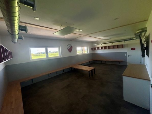 Ab dem Herbst standen umfangreiche Arbeiten an der Elektrik und am Neubau der Heimkabine im Mittelpunkt. Der komplette Innenausbau der neuen Kabine wurde durchgeführt, inklusive eines neuen Bodenbelags. Parallel dazu erfolgte die Modernisierung der gesamten elektrischen Anlage – vom neuen Hausanschluss über moderne Verteiler bis hin zu den Zähleranlagen. Damit ist das Sportheim nun auch technisch auf dem neuesten Stand.